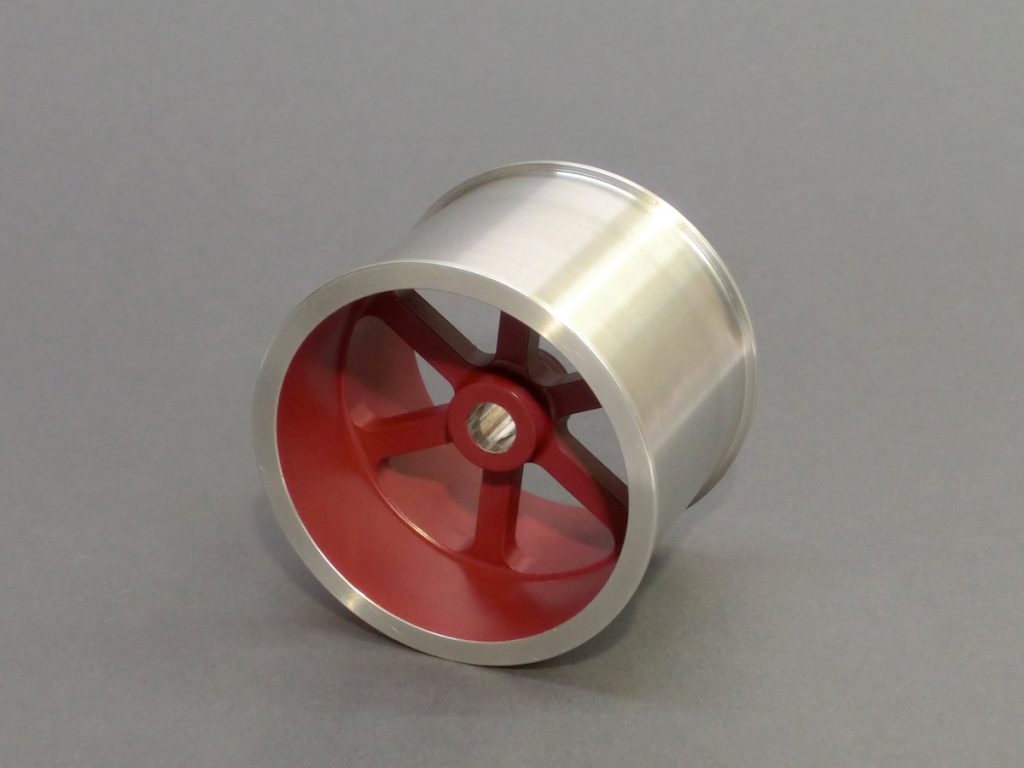 Das Herausfräsen der Zwischenräume für die 5 Speichen erledigte meine kleine CNC-Fräsmaschine. Aber ich musste zum Spannen, sowohl für das Drehen als auch später für das Fräsen, Aufnahmen herstellen, um das große Schwungrad sicher bearbeiten zu können.