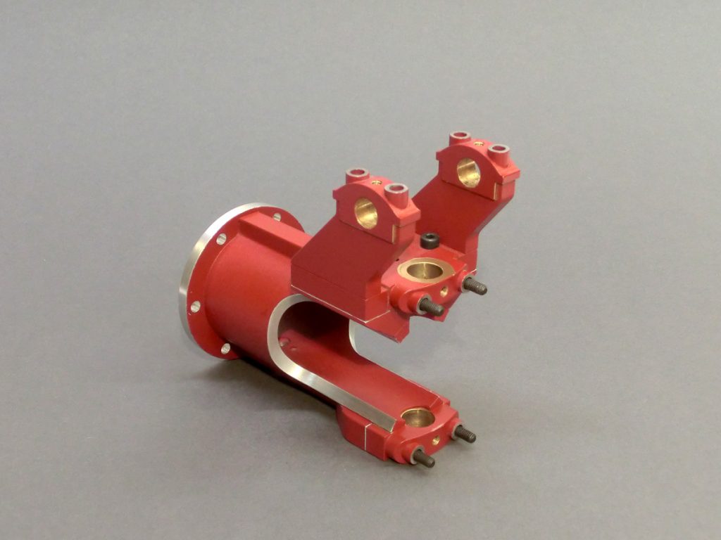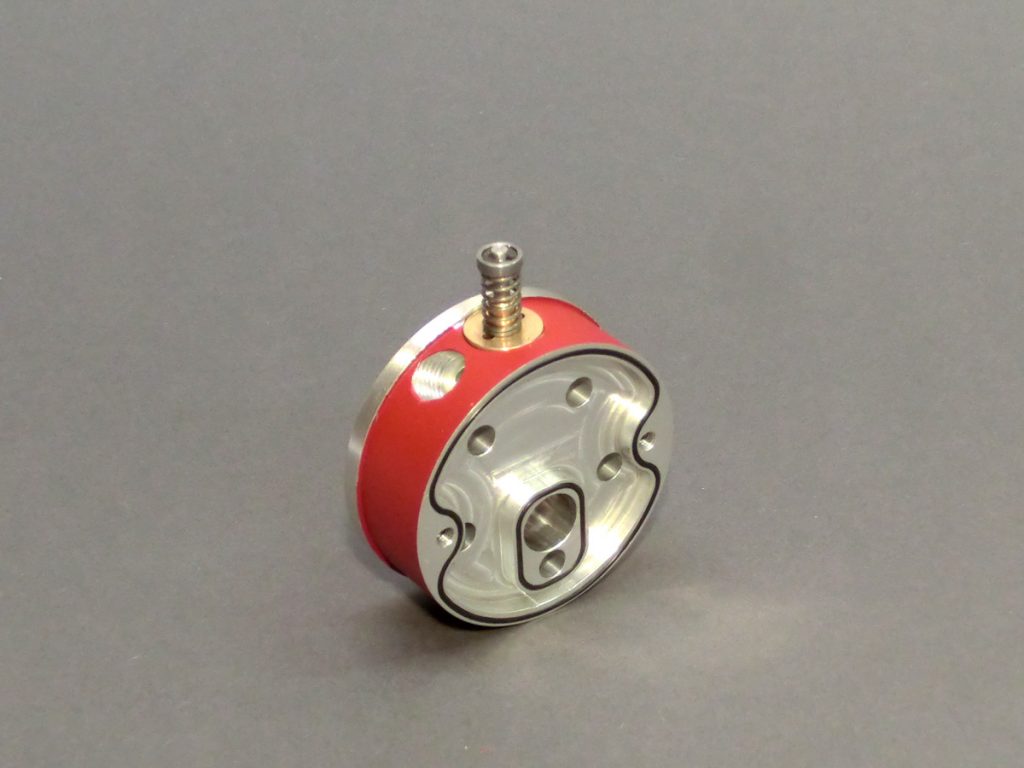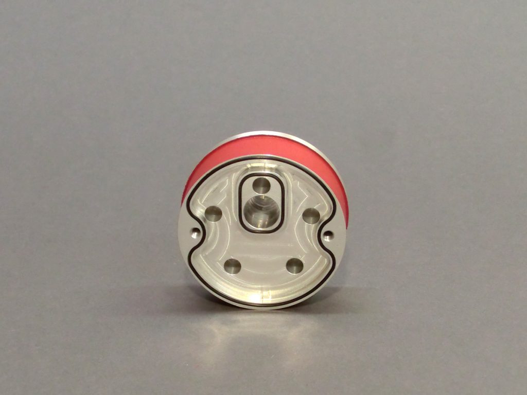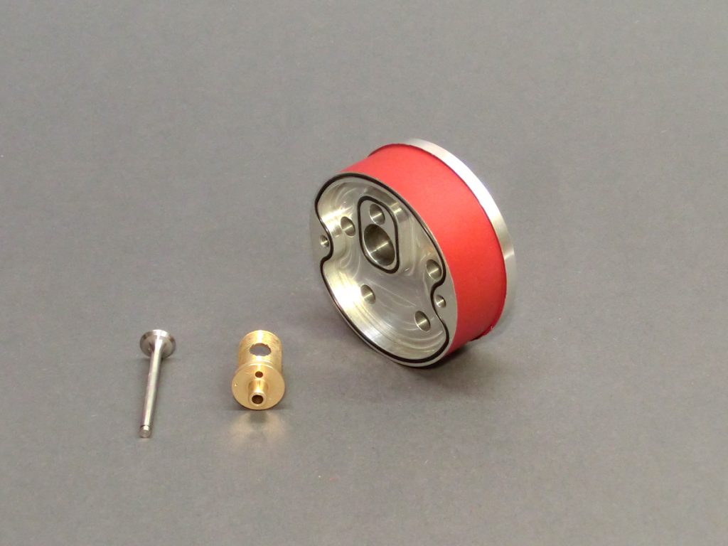 Ein weiteres anspruchsvolles Bauteil ist der Zylinderkopf, der, ebenso wie der Zylinder wassergekühlt ist. Er besteht wegen der guten Zerspanbarkeit aus dem gleichen Material wie der Kolben und besitzt einen hinteren Deckel, der, gleichfalls wie die Senkung für die Glühkerze, mit einem O-Ring abgedichtet wird.